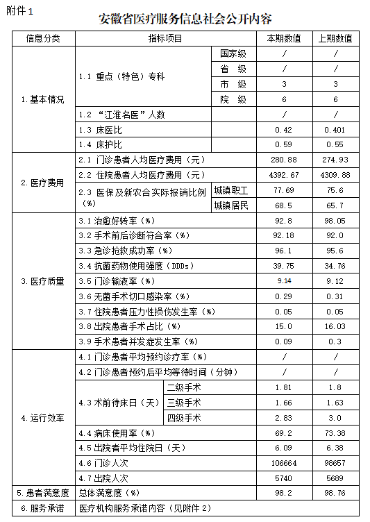 含山县人民医院2025年第四季度医疗服务信息公开