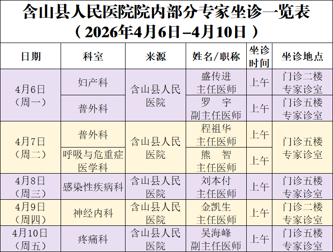 院内外专家专科坐诊信息(2026年4月6日—4月12日)