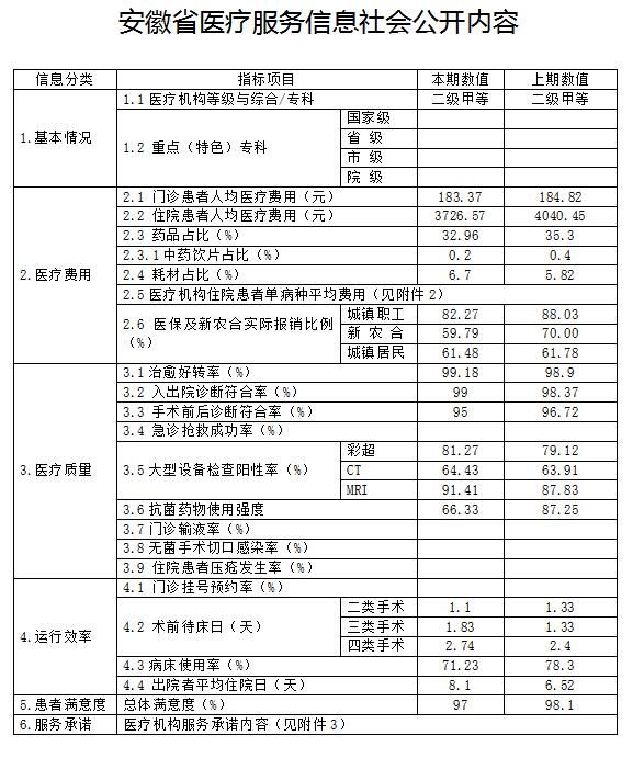2017年度第二季度安徽省医疗服务信息社会公开内容