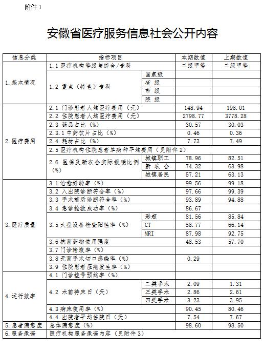 2018年度第二季度安徽省医疗服务信息社会公开内容
